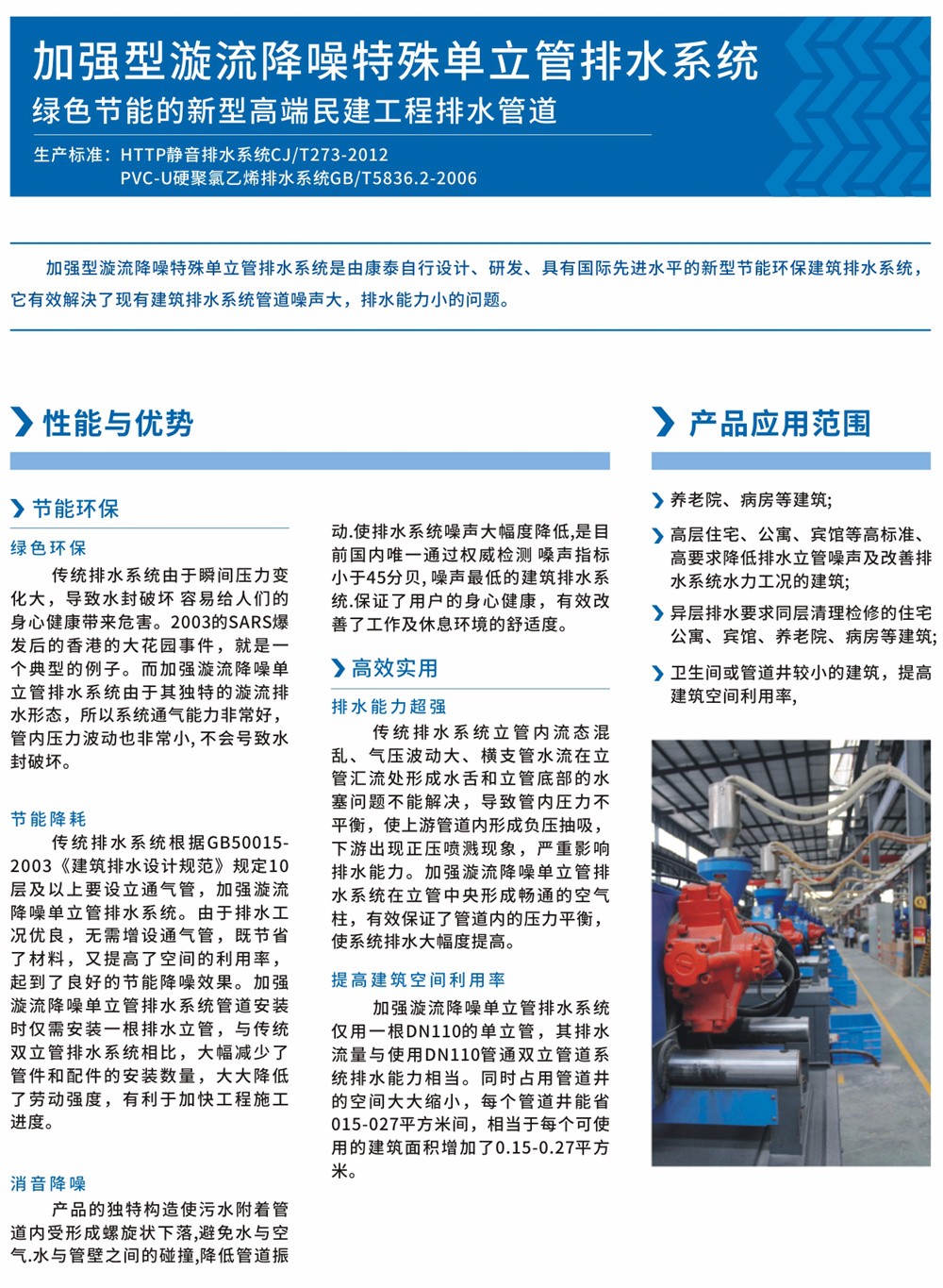 生产标准:HTPP静音排水系统CJ/T273-2012;;;;;; PVC-U硬聚氯乙烯排水系统GB/T5836.2-2006