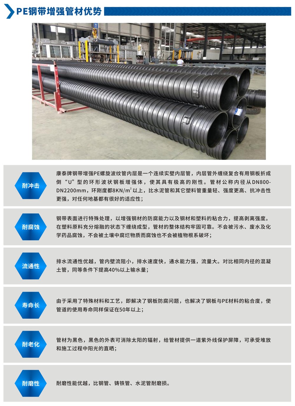 高分子一次熔融注塑成型PE钢带增强柔性毗连受材: